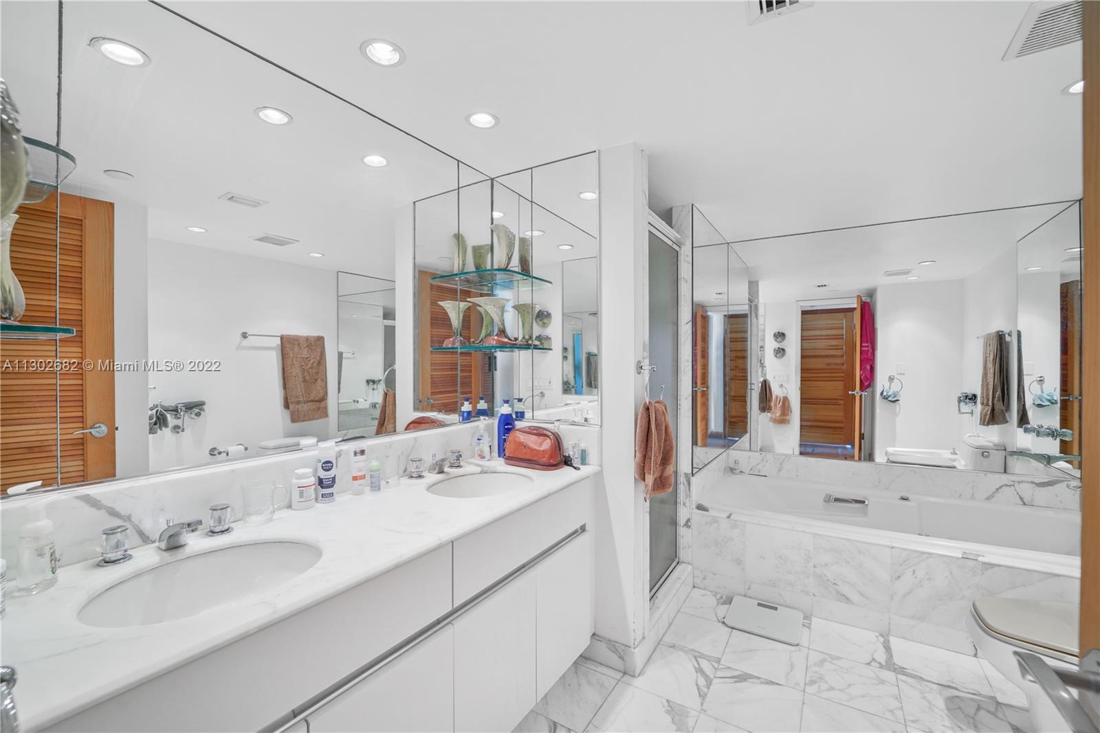 Location, location, location! Spacious 2 (potentially 3) bed 2.5 bath corner unit in full-service South of Fifth building. Open kitchen. Main suite features an en-suite bath with double vanity and walk in shower. Window cover throughout. Parking included. The building features newly renovated resort style amenities. Move in and enjoy! No pets. No storage. Annual lease only.